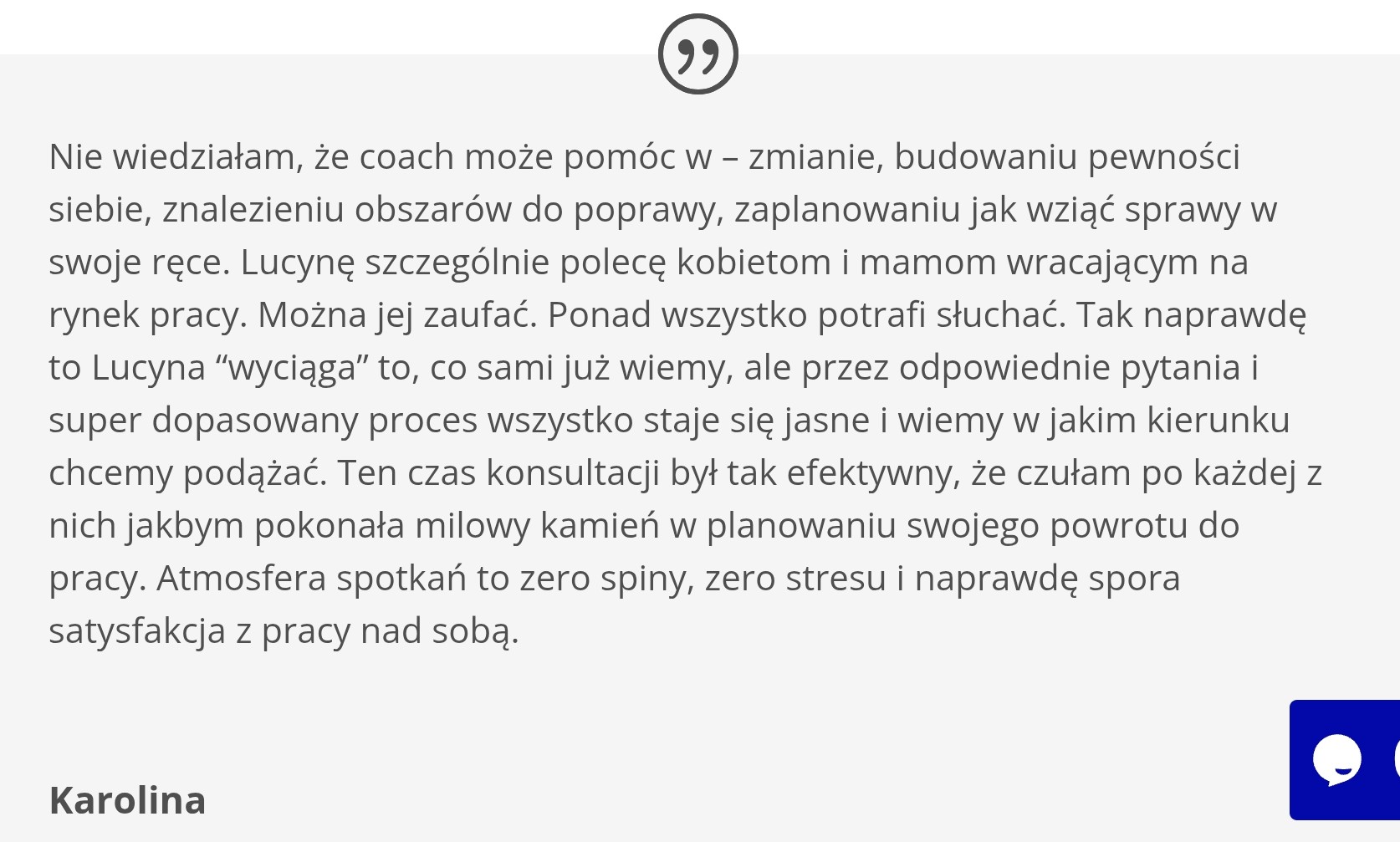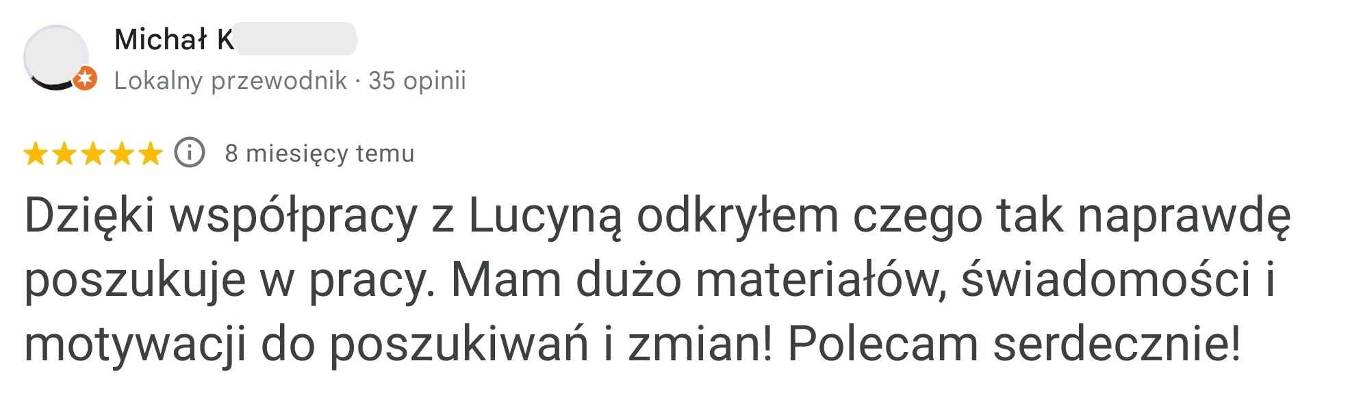 Do podjęcia współpracy nie potrzebujesz formalnej diagnozy (choć zachęcam, jeśli są ku temu przesłanki i możliwości, bo ta wiedza może uruchomić wsparcie z innej istotnej perspektywy np. medycznej, terapeutycznej, prawnej). Zbierając informacje o Twoich potrzebach czy mocnych stronach bazujemy na doświadczeniach i z perspektywy układania strategii rozwoju zawodowego nie jest najważniejsze czy np. konieczność uzyskiwania regularnej informacji zwrotnej od przełożonego dla podtrzymania motywacji wynika z ADHD. Koncentrujemy się na rozwiązaniach, nie na analizie przyczyn.